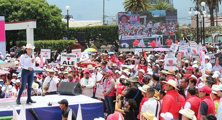 Rodeada de cientos de militantes y simpatizantes en el bello escenario natural que cubre la zona de Los Volcanes, Alejandra Del Moral Vela, candidata de la coalición Va por el Estado de México, aseguró que las encuestas la posicionan en un empate ante la abanderada de Morena, Delfina Gómez.