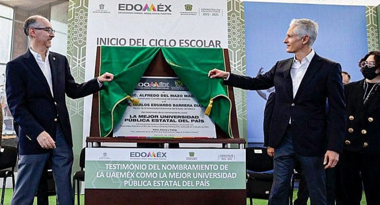 Al poner en marcha el Ciclo Escolar 2022-2023 de la Universidad Autónoma del Estado de México (UAEMex), el gobernador Alfredo Del Mazo Maza reconoció a esta institución por ser evaluada como la mejor universidad pública estatal del país, de acuerdo con el ranking del Times Higher Education (THE).