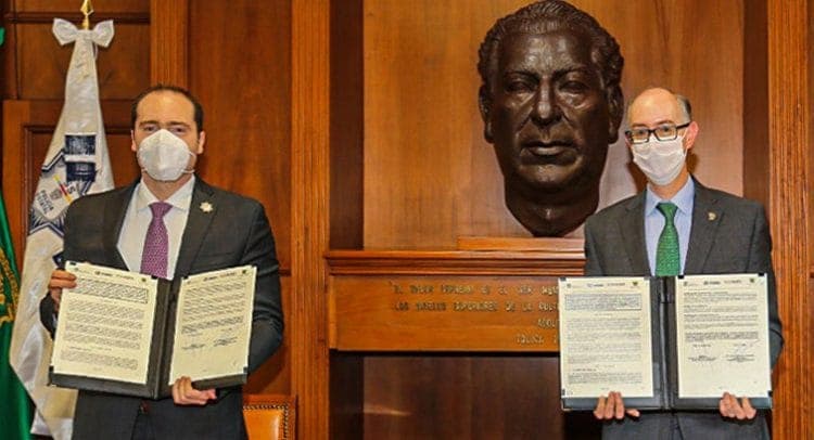 Toluca.- Con el propósito de consolidar la estrategia de seguridad en territorio estatal y salvaguardar la integridad de la comunidad universitaria, la Universidad Autónoma del Estado de México (UAEMéx) y la Secretaría de Seguridad de la entidad firmaron un convenio de colaboración.