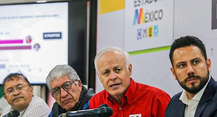 El líder priista presentó 4 encuestas de despachos especializados, “Buendía y Laredo” que establece una diferencia de 9 puntos, “Beltrán GC” con diferencia de 8 puntos, “Massive Caller” con diferencia de 5.6 puntos y “Rubrum” que muestra 4.2 puntos de diferencia.