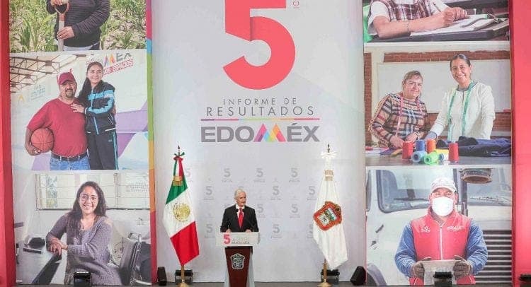En el mensaje que dirigió a empresarios, líderes sindicales, académicos, senadores, diputados, líderes religiosos, alcaldes, exgobernadores mexiquenses, representantes de partidos políticos, de organismos autónomos, de los pueblos originarios del estado y a los miembros del Gabinete legal y ampliado, Alfredo Del Mazo resaltó que el Edoméx es el mayor generador de empleo en el periodo pospandemia, ya que partir de agosto de 2020 generó 22 por ciento del empleo nacional, además de haber recuperado los empleos perdidos en la emergencia sanitaria.