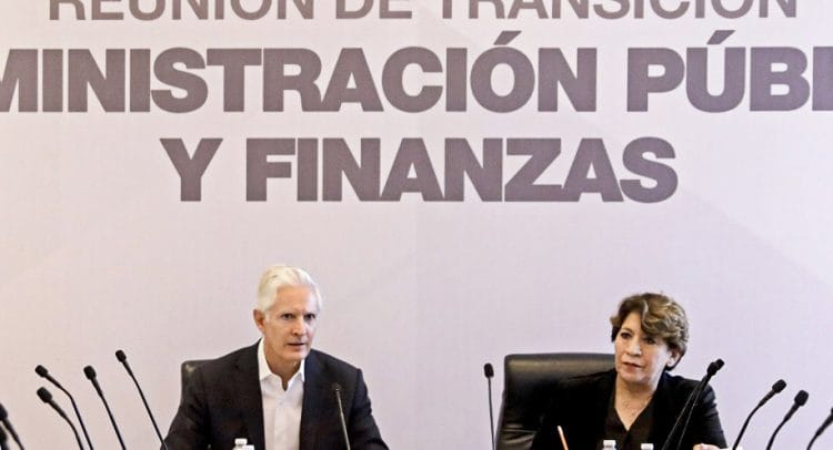 Toluca.- Con el propósito de exponer y abordar los asuntos relacionados con la Administración Pública y las Finanzas del Estado de México, el Gobernador Alfredo Del Mazo Maza y la Gobernadora Electa para el periodo 2023-2029, Delfina Gómez Álvarez, encabezaron una nueva sesión de transición en el Palacio de Gobierno estatal.