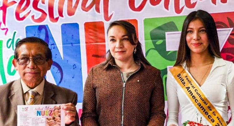 Amecameca.- Con el propósito de impulsar la recuperación económica y fomentar el consumo local, tras dos años de confinamiento por la pandemia de Covid-19, el gobierno de Amecameca anunció el “Festival Cultural de la Nuez 2022” del 6 a 14 de agosto, donde además se impulsará a los grupos musicales y talentos locales.