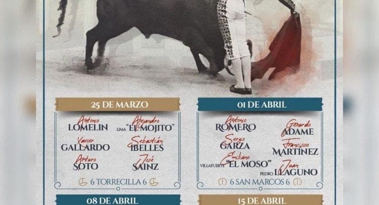 En el renglón taurino, a nombre de Don Bull Productions, los matadores “Curro” Leal y Manolo Mejía dieron a conocer que se llevarán a cabo cuatro corridas de toros en la plaza Silverio Pérez, entre el 25 de marzo y el 15 de abril.