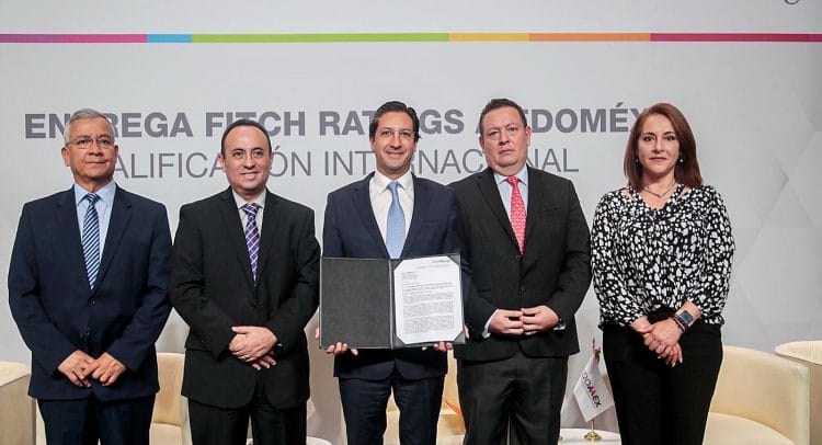 Toluca.- Por primera vez, el Estado de México recibió la calificación internacional por la calificadora Fitch Ratings, que es el máximo nivel que se puede otorgar a una entidad federativa en el país y es la misma calificación que tiene el Gobierno de México (BBB- perspectiva estable).