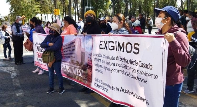 Derechohabientes del Instituto de Seguridad Social del Estado de México y Municipios (ISSEMyM) salieron a las calles para exigir que se ponga un alto al desabasto de medicamentos, se mejore la calidad de los servicios y para dejar en claro que no aceptarán ninguna reforma al instituto, mientras no exista transparencia en el manejo de los recursos, pues es necesaria una auditoria de fondo al organismo.