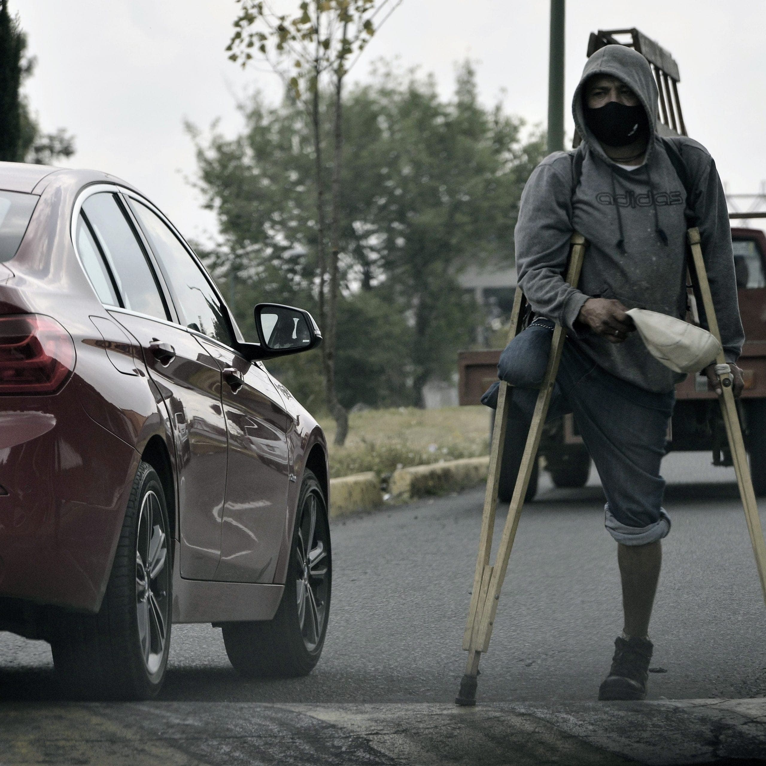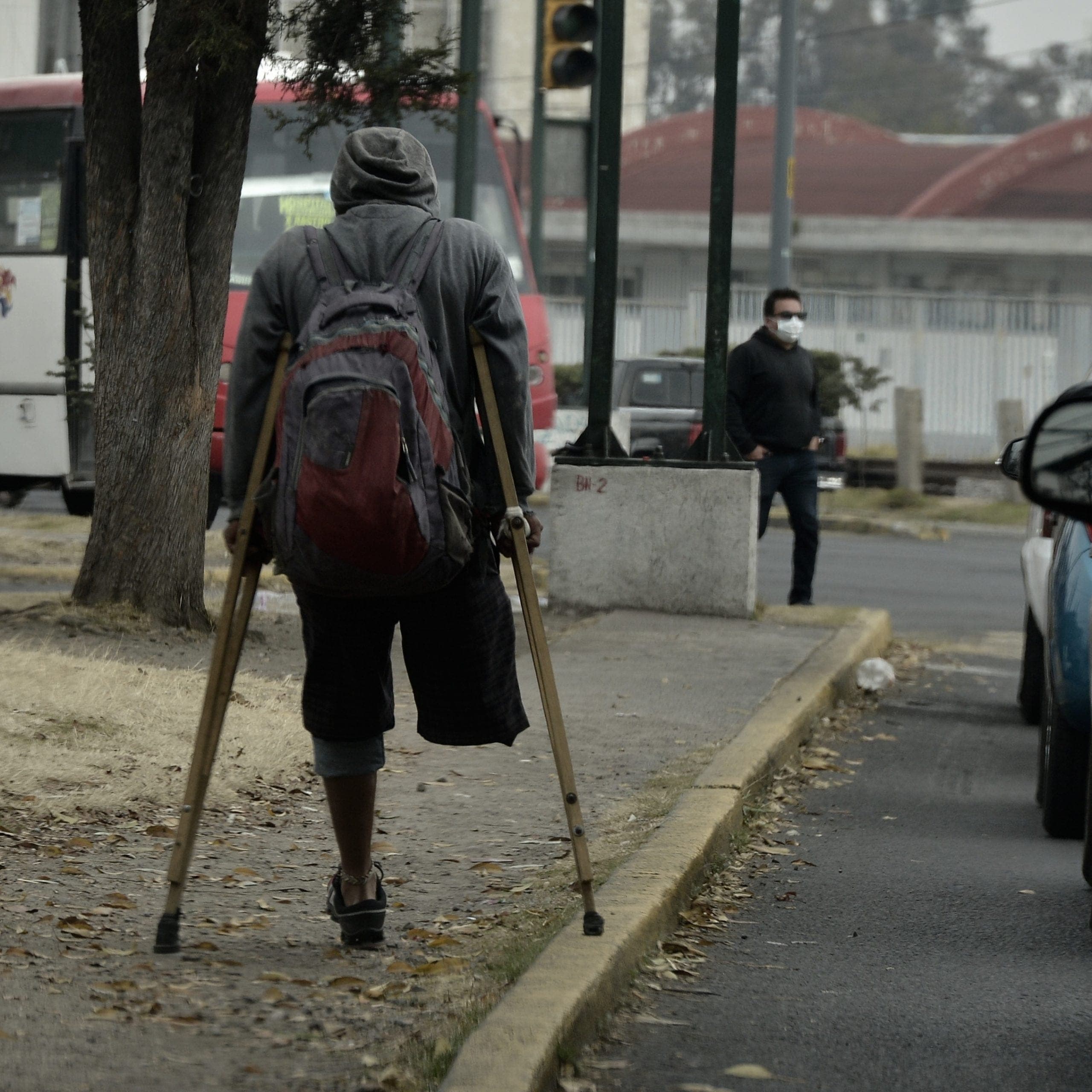 Se trata de un migrante centroamericano quien a pesar de su evidente discapacidad ha logrado llegar hasta Toluca y está decidido a continuar su camino.