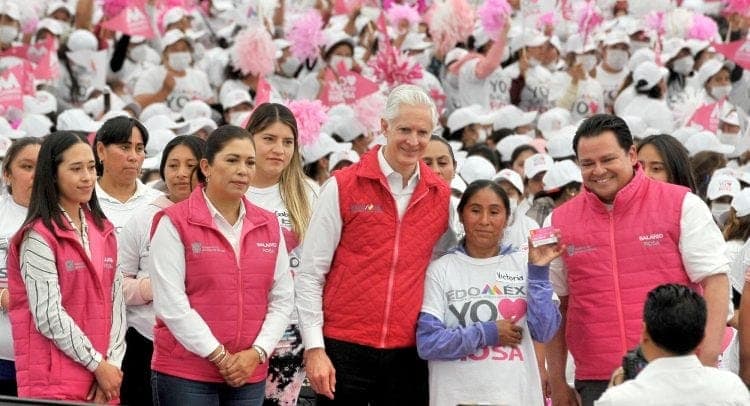 De manera simultánea el Gobernador mexiquense entregó más de 5 mil tarjetas del programa, y llamó a las beneficiarias a invitar a sus amigas y vecinas a sumarse al Salario rosa para continuar llegando a quienes más lo necesitan, como se ha realizado en los últimos cinco años, tiempo en el que ya más de 600 mil mujeres de los 125 municipios reciben el apoyo.