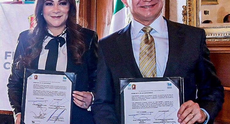 Toluca.- Los derechos humanos en Toluca están a buen resguardo con una institución profesional y comprometida para hacer que en esta tierra llena de vida se respete la dignidad de cada ser humano, coincidieron el Presidente Municipal de Toluca, Raymundo Martínez Carbajal, y la Presidenta de la Comisión de Derechos Humanos del Estado de México (CODHEM), Myrna García Morón, tras la firma del Convenio General de Colaboración entre ambas instituciones.