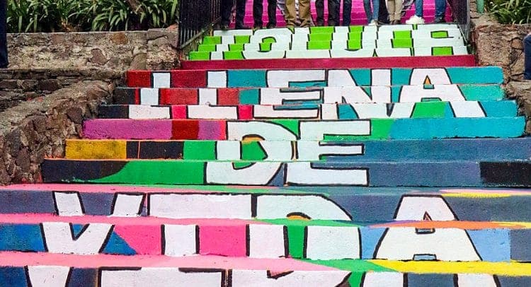 Asimismo, se realizaron trabajos de remozamiento de la Plaza del Tiempo y con intervención de la Dirección de Apoyo a la Juventud de la Dirección General de Desarrollo Social, se pintaron las gradas con una obra del artista urbano Sensetl.L.Crea.
