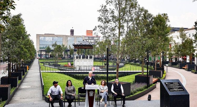 Toluca.- El Gobernador Alfredo Del Mazo Maza entregó la renovación de la Plaza González Arratia, como parte de la intervención que su administración impulsa para mejorar el Centro Histórico de la ciudad de Toluca, así como para brindar a las familias mexiquenses áreas verdes para la convivencia y esparcimiento.