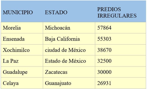 Esta cantidad se sumaría a la estadística de los asentamientos irregulares localizados por el censo realizado por  INEGI que muestra otro negocio  millonario cuando observamos la tabla  donde coloca al municipio con 32500 predios irregulares existentes. Si hablamos que cada uno de estos predios se vendió en un precio aproximado de 250 mil pesos. Nos arroja un negocio de más de 8 mil millones de pesos.