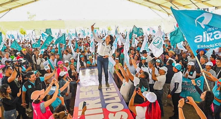 Ante miles de simpatizantes del partido Nueva Alianza, Alejandra Del Moral Vela, candidata de la coalición Va por el Estado de México, expresó su respeto y admiración por las y los profesores mexiquenses, con quienes se comprometió a cuidar sus beneficios y prestaciones, ante las amenazas de Morena.