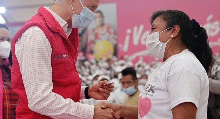 El gobernador del Estado de México, Alfredo Del Mazo Maza, entregó tarjetas del programa Familias Fuertes Salario Rosa a más de 6 mil 800 mujeres de Atizapán de Zaragoza, Huixquilucan, Isidro Fabela, Jilotzingo, Naucalpan de Juárez, Nicolás Romero, Xonacatlán y Cuautitlán Izcalli.