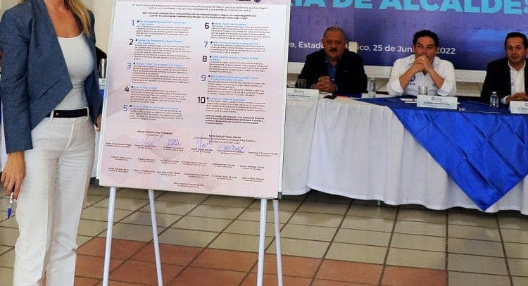Romina Contreras Carrasco signó el Decálogo de las 10 acciones que el PAN considera importantes para fortalecer a los municipios de México; con su firma asume el compromiso de mantenerse como uno de los mejores gobiernos del país y poner en práctica acciones encaminadas en que las y los ciudadanos vivan en un lugar mejor, contar con autoridades más cercanas, transparentes y que entreguen los mejores resultados.