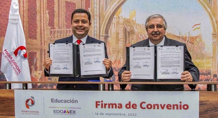 En Palacio de Justicia de Toluca, Ricardo Sodi Cuellar, Presidente del Tribunal Superior de Justicia de la entidad, suscribió el documento con Gerardo Monroy Serrano, titular de la Secretaría. El documento, también establece la coordinación entre ambas instituciones, para difundir y promover la cultura de la paz, y la restauración de las relaciones interpersonales y sociales que se vean afectadas por conflictos en el ramo educativo.