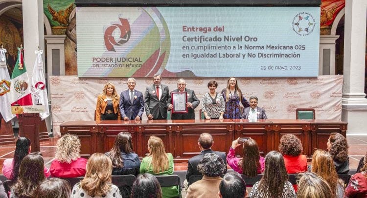 Toluca.- El Poder Judicial del Estado de México recibió el Certificado Nivel Oro en la Norma Mexicana 025 en Igualdad Laboral y No Discriminación, ubicándose entre los cinco tribunales mexicanos donde se reconoce la búsqueda permanente del respeto y la defensa de los derechos humanos y la dignidad.