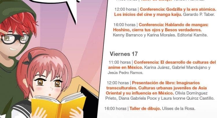 El 16 de febrero a las 11:00 horas inicia el taller de dibujo con Yunuen Ramírez, a las 12:00 horas la conferencia “Godzilla y la era atómica. Los inicios del cine y manga kaiju”, con Gerardo P. Taber, y a las 16:00 horas la charla “Hablando de mangas: Hoshino, cierra tus ojos y Besos verdaderos”, con Kenny Barranco y Karina Morales de la Editorial Kamite.