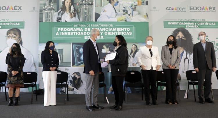 • El gobernador Alfredo del Mazo entregó apoyo económico a 105 investigadoras y científicas de 23 instituciones educativas, de las cuales 32 son de la UNAM y 31 de la UAEM