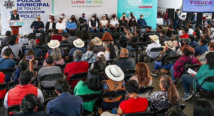 Toluca.- En cumplimiento de su compromiso de acompañar la vida cotidiana de las personas con acciones integrales para reforzar la seguridad y la reconstrucción del tejido social, el Presidente Municipal de Toluca, Raymundo Martínez Carbajal, encabezó la entrega de patrullas, presentación del programa Policía Pie a Tierra, Jornada de Servicios, distribución de agua purificada y servicios de esterilización y vacunación antirrábica en San Lorenzo Tepaltitlán.