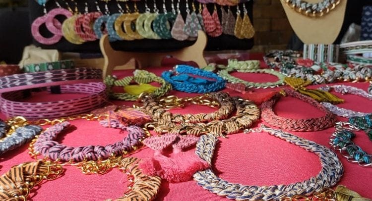 Entre las piezas a la venta hay textiles como rebozos, blusas bordadas, cojines, servilletas y manteles deshilados, quexquémetl, capas y suéteres, en cuanto a joyería, trabajos en plata, aretes, pulseras y dijes.