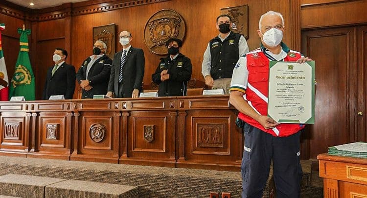 En la Sala “Dr. Gustavo Baz Prada” del edificio de Rectoría, Barrera Díaz otorgó 22 reconocimientos por trayectoria a quienes suman 20 años o más de servicio en esta labor, así como dos reconocimientos a dos trabajadores que participaron en acciones relevantes en beneficio de la comunidad universitaria, las cuales impidieron la sustracción de bienes materiales pertenecientes a esta casa de estudios.