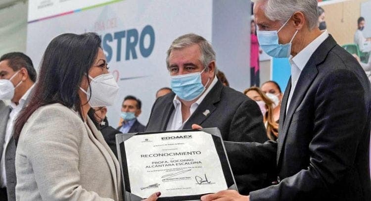 En el marco del Día de la Maestra y del Maestro, el gobernador Alfredo Del Mazo, entregó reconocimientos a docentes con más de 25 y 40 años de servicio.