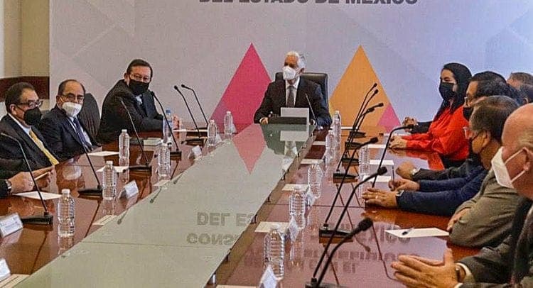 Toluca.- El Gobernador Alfredo Del Mazo Maza sostuvo una reunión con el Presidente del Consejo Interreligioso del Estado de México (CIEMEX), Monseñor Daniel Alberto Medina Pech, con arzobispos, obispos y pastores para dialogar sobre el papel de las agrupaciones religiosas en la entidad.