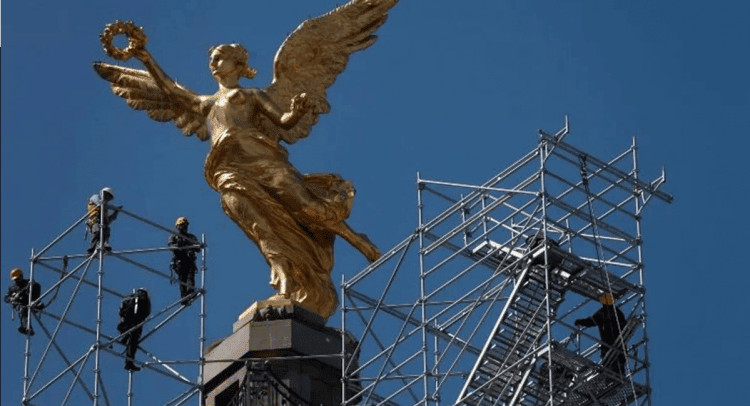 El Ángel, como lo conocen los capitalinos, es una escultura dorada de una victoria alada encima de una columna conmemorativa y un mausoleo inaugurado por Porfirio Díaz en 1910, cuando se cumplieron los 100 años del inicio de la guerra de independencia.