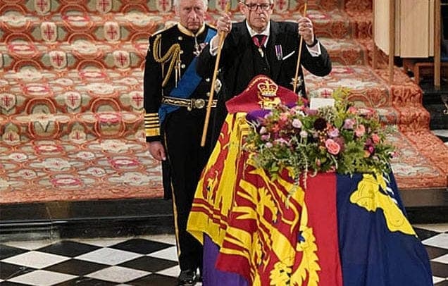 Rompen vara de oficio y retiran corona del ataúd de Isabel II, marcando el fin de una era
