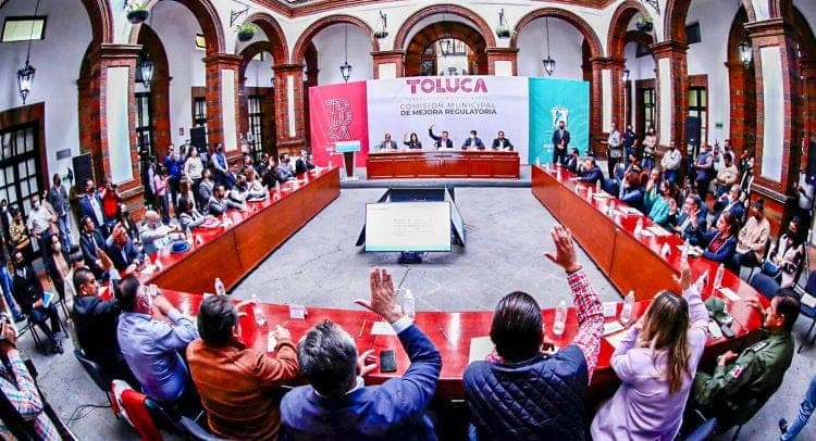 Toluca.- Toluca se encamina a ser un gobierno digital que actúa de manera responsable y comprometido para sentar las bases de un nuevo modelo de Ayuntamiento, donde la población sea el centro de atención y les brinde seguridad y paz, enfatizó el Presidente Municipal de Toluca, Raymundo Martínez Carbajal durante la Tercera Sesión Ordinaria de la Comisión Municipal de Mejora Regulatoria.
