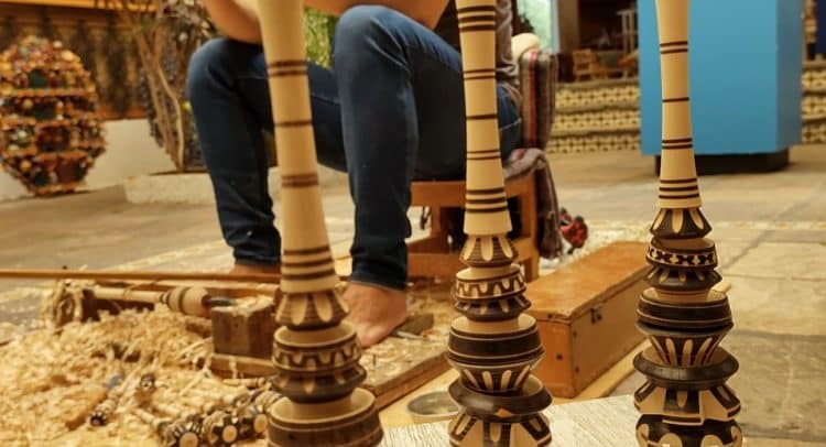 En este municipio aún preservan la tradición de transformar madera con el torno de violín, una técnica ancestral que muy pocos dominan, donde manos y pies apoyados de las herramientas se conjugan con el talento de las maestras y maestros de este arte popular.