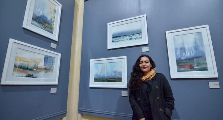 Músico de formación e historiadora del arte, desde hace dos años la joven artista encontró en la pintura, concretamente, en la técnica de la acuarela un estilo de ver la vida y expresar sus emociones a través de la creación de conceptos abstractos, con paisajes en los que predominan las tonalidades grises, oscuras, el color índigo y la utilización del tono blanco del papel.