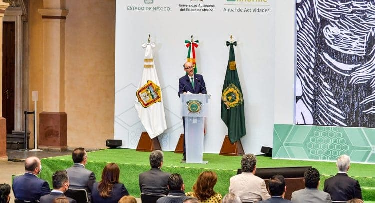Durante su informe, destacó que resultado de la firme convicción y compromiso con la transparencia y rendición de cuentas, la deuda de la Autónoma mexiquense con el Instituto de Seguridad Social del Estado de México y Municipios (ISSEMyM) disminuyó 55.3 por ciento.
