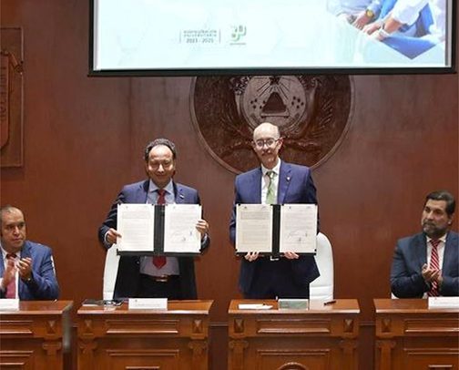 Toluca.- Con la finalidad de establecer sinergias en pro de la profesionalización del estudiantado universitario en el área de la industria constructora, la Universidad Autónoma del Estado de México (UAEMéx) y la Cámara Mexicana de la Industria de la Construcción (CMIC), delegación Estado de México, firmaron un convenio general de colaboración en la Sala “Lic. Benito Juárez García” del Edificio de Rectoría.