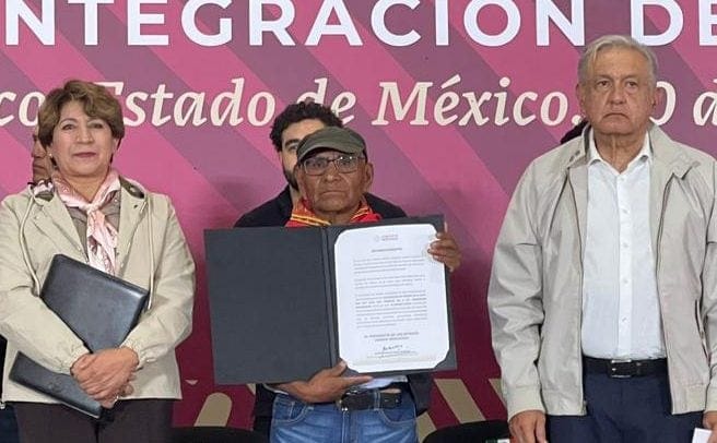“Con la visita del Presidente de la República el licenciado Andrés Manuel López y la virtual candidata electa, la maestra Delfina Gómez Álvarez se da un mensaje de respeto, protección y reivindicación de derechos de las comunidades agrarias, en este caso del ejido de Atenco y sus ejidatarios, pero también para que se entienda que debe respetarse a estos núcleos agrarios de propiedad social de la tierra”, puntualizó.
